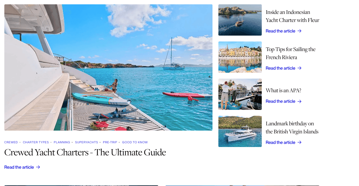 We deliver over 350 crewed charters each year, have access to every charter fleet worldwide, and pride ourselves on our ability to find the perfect fit for you, tailoring each charter to suit your individual needs.