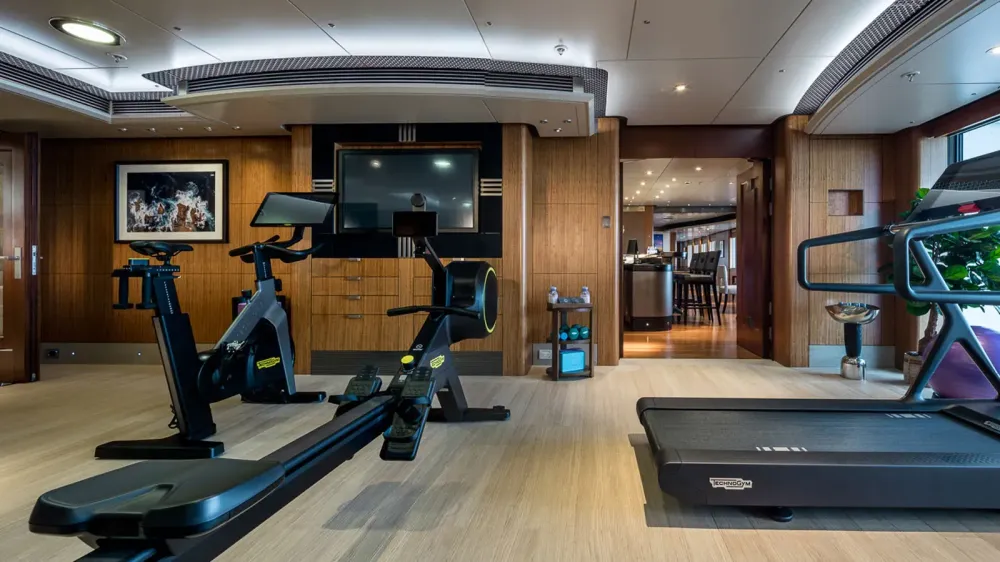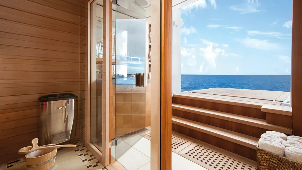 The 63m Feadship Lady Britt allows guests to jump straight from the Finnish sauna to the sea! She offers ample space for massages, other spa treatments and features panoramic glass sliding doors from her gym to the amazing spa pool on the sundeck .