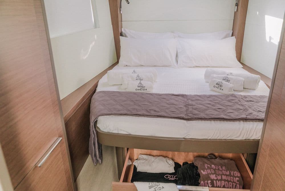 ONEIDA has five double cabins, each with private en suite facilities and ample living and outside dining space, fore deck and in the saloon.