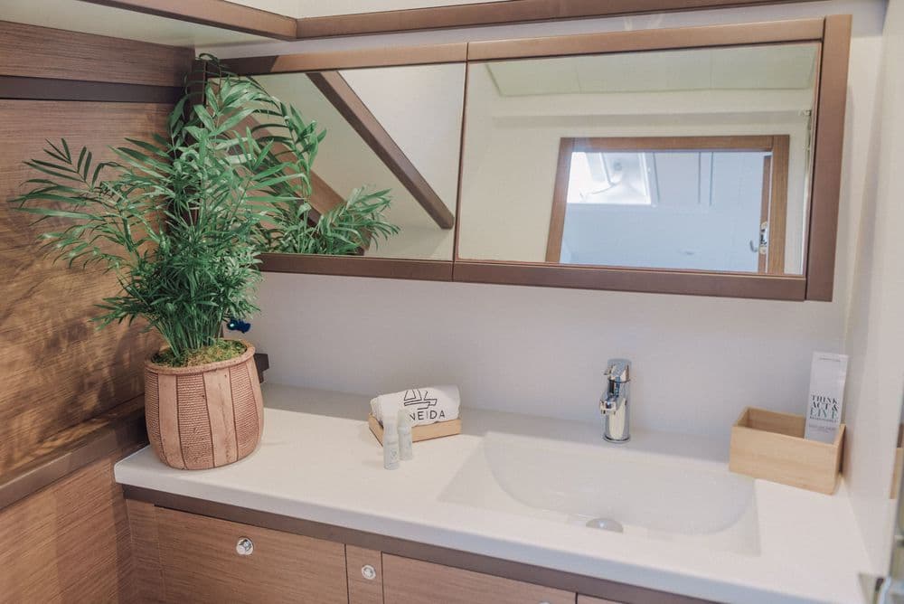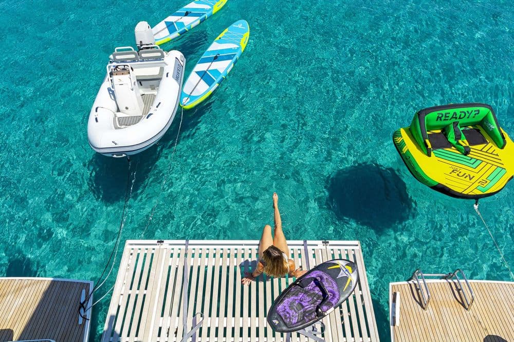 The fore deck also has a sofa area and trampoline ideal for sunbathing, reclining and taking in panoramic views of the Cyclades.