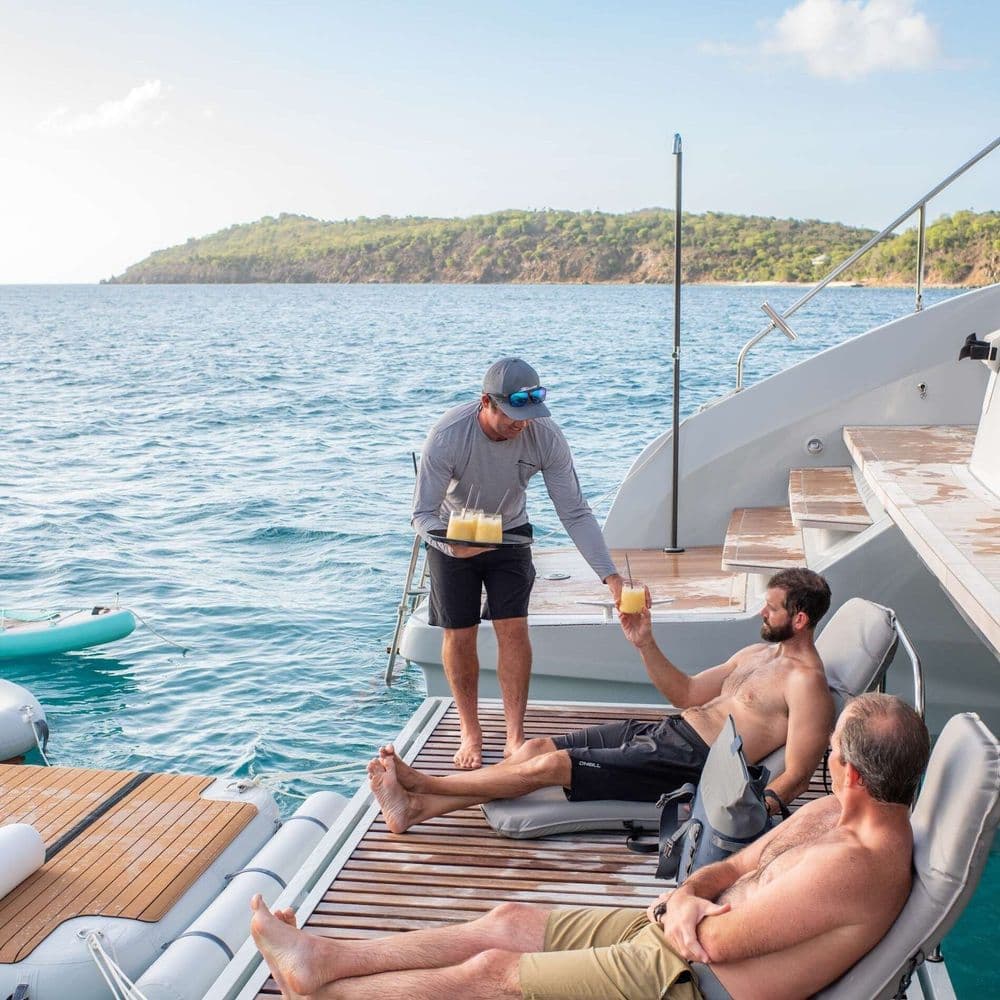 Standard Caribbean (CYBA) terms include food and drink, fuel, cruising taxes and permits in the charter fee, along with all expenses related to running the vessel and use of on-board equipment.